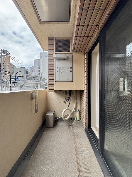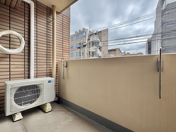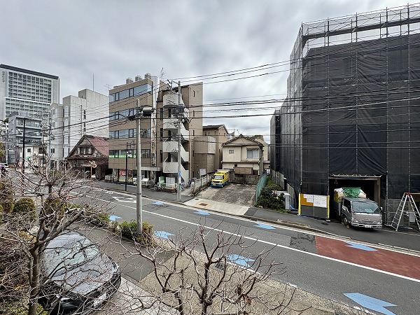 バルコニーの外には、渋谷駅徒歩10分圏内と思えないほど落ち着いた雰囲気の道路が見えました。時間帯にもよると思いますが、車の往来が少なく音もそれほど気になりません。道路沿いなので至近距離に建物はなく、風通し良好です。