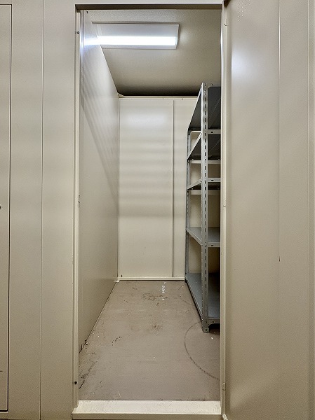 地下フロアにトランクルームを完備しています。各住戸に割り振られた鍵付きの部屋があり、アウトドア用品や季節物の寝具などを収納するのに便利。
