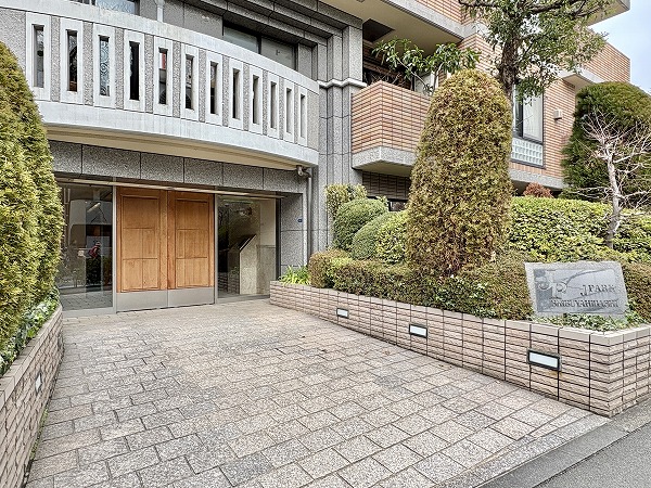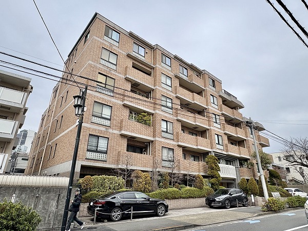 ブラウンのタイル張りの外観が特徴的な地下1階・地上6階建てマンション『ジェイパーク渋谷東』。1999年に竣工した新耐震基準適合物件です。