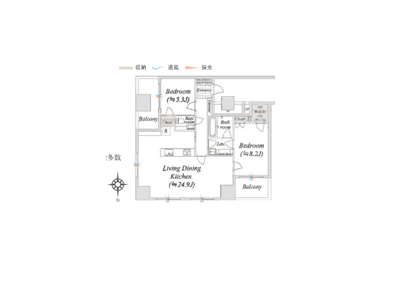 86.00㎡ 2LDK+WIC