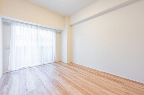 バルコニーに面した、おおよそ6.0帖のお部屋。南西向きの窓からはたっぷりの採光が入ります。ベッドを置いて寝室にするのがおすすめです。毎朝心地良いお目覚めが期待できそう♪
