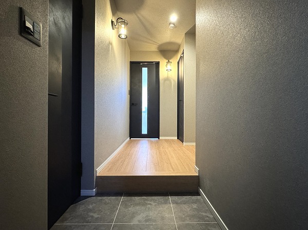 玄関にはL型のシューズインクローゼットを完備。可動棚付きで靴はもちろん、キャリーバッグや防災グッズ、アウトドア用品までまとめて収納可能です。扉を閉めれば玄関がすっきり見え、整理整頓された印象をキープできますよ。