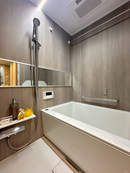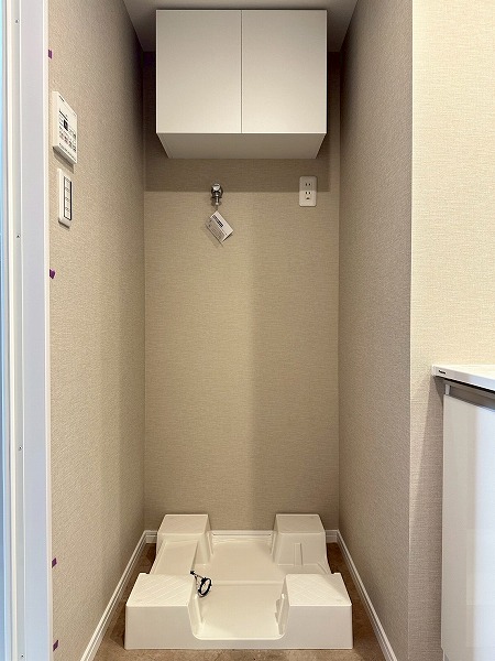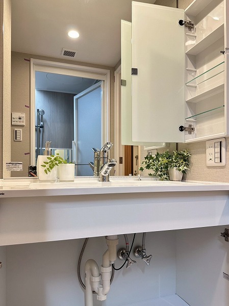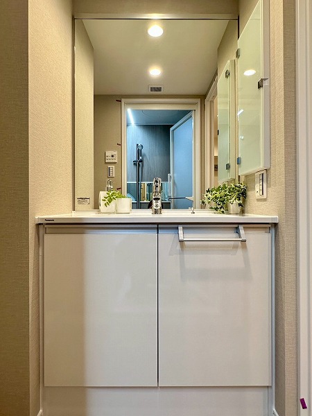 サニタリールームには洗面台・洗濯機置き場・バスルームが集結。水回りの機能がまとまっていると、生活動線もスムーズですよね♪バスルームには、快適なご入浴に欠かせない追焚き機能&浴室乾燥機を完備しています。