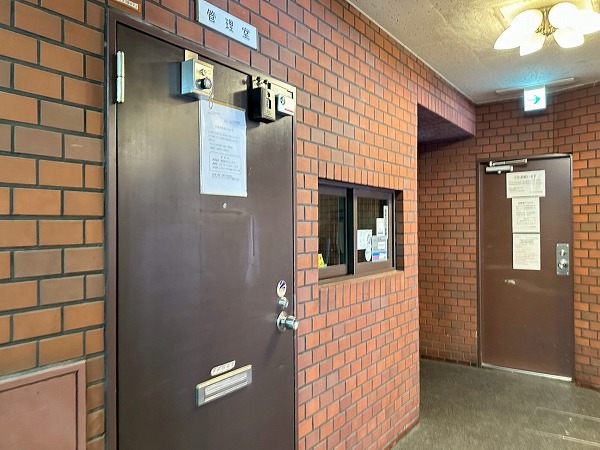 エントランスにはオートロック完備で、セキュリティ対策万全。中には管理人室もありました。