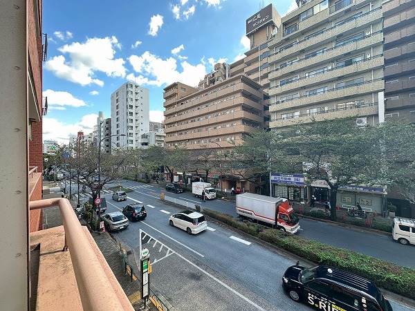バルコニーは5.32㎡の広さがあり、陽当たり&風通し良好。衣類はもちろん、シーツやカーペット類なども思い切り干せます。明治通りを一望できる、開放感溢れる眺望をお楽しみください♪