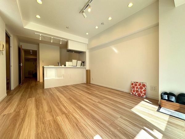 メインとなるのは、約11.3帖のリビングダイニングキッチン。南向きで陽当たりが良く、更にはエアコン1基が備わっているので、引越し直後から快適な暮らしをスタートできます。