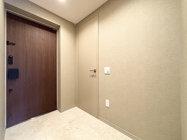 モダンなデザインの空間で、まるでホテルのような共用部です。エントランスにはソファとテーブルもあり、タクシーの待ち時間や急な来客時に便利ですね♩