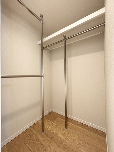 約9.2帖の洋室は主寝室に最適なゆとりある広さ。南東向きの大きな窓からたっぷりと陽光が差し込み、朝は自然光で心地よく目覚められそうです。約1.0帖のウォークインクローゼットを備え、衣類や季節用品もすっきり収納可能。空間を広々と使えるのは嬉しいですよね。