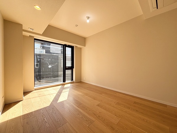 約18.2帖のメインルームは、家族が自然と集まるゆとりの広さ。大型のソファやダイニングテーブルを配置しても空間に余白が生まれ、伸びやかな印象を与えます。床暖房を完備しているため冬場でも足元からじんわりと温かく、小さなお子様やペットが床付近で過ごすご家庭にも安心です。さらに天井にはビルトインタイプのエアコンを設置。空間がすっきりと見え、インテリアの美しさを損なうことはありません。