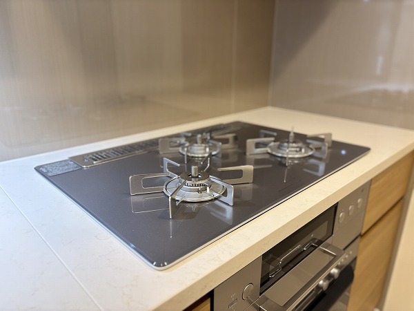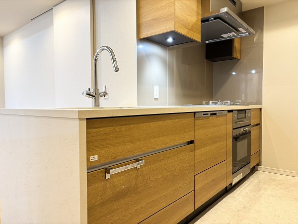 キッチンは独立性の高い位置に配置され、約5.5帖の広さを確保。ご家族で並んで調理しても余裕があり、料理の時間そのものを楽しめる空間です。ビルトインオーブンやディスポーザー、食洗機など設備も充実しており、忙しい毎日の家事をしっかりサポート。日々の積み重ねが快適さへとつながる、機能美あふれるキッチンですよ♪