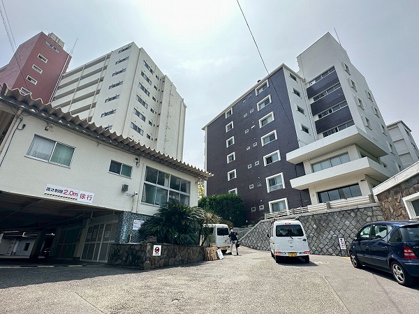 閑静な高台に建つ『松風園コーポ』は、ブラウン×ホワイトの柔らかな色合いが印象的。築年数を感じさせないほど外観が美しく、管理の行き届いたマンションです。周囲は緑に包まれた落ち着いた住環境で、ジョギングやお散歩にもぴったり。都心にいながら、自然の息づかいを感じられる立地です。