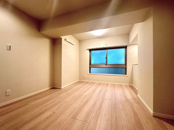 約5.7帖の洋室は、バルコニーに面した明るいお部屋。大きな窓から光と風が心地よく入り、開放的な印象です。もちろんクローゼットも備わっており、衣類や小物をスッキリ収納できます♪