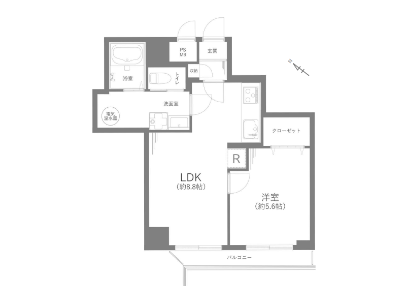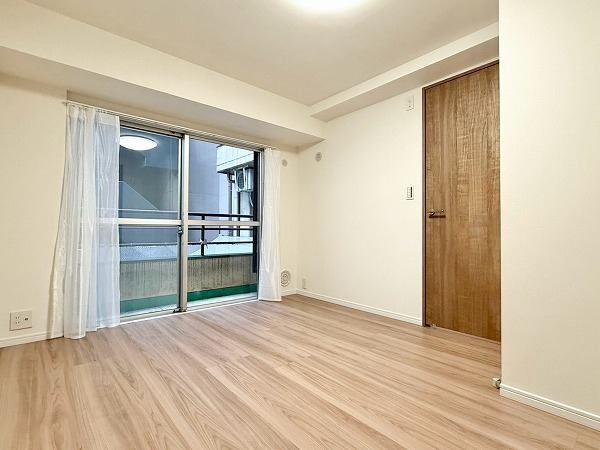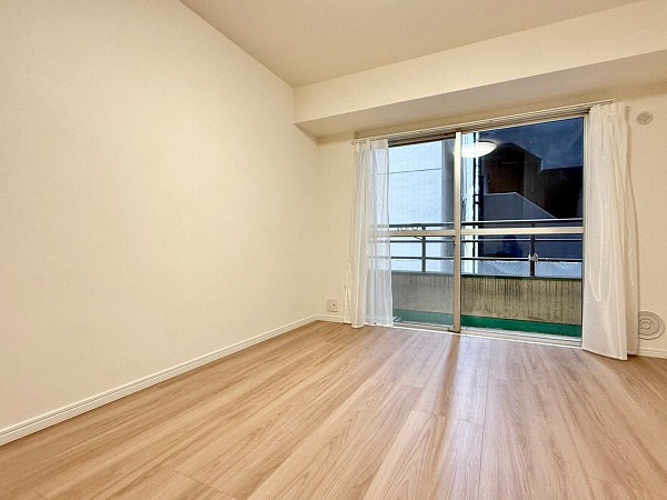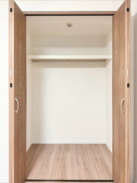 メインルームに隣接する洋室は約5.6帖。容量たっぷりのクローゼットが備わっており、丈のある衣類もしわをつけずに収納可能です。リビング・洋室どちらもバルコニー向きで、明るさを感じられる空間になっています。