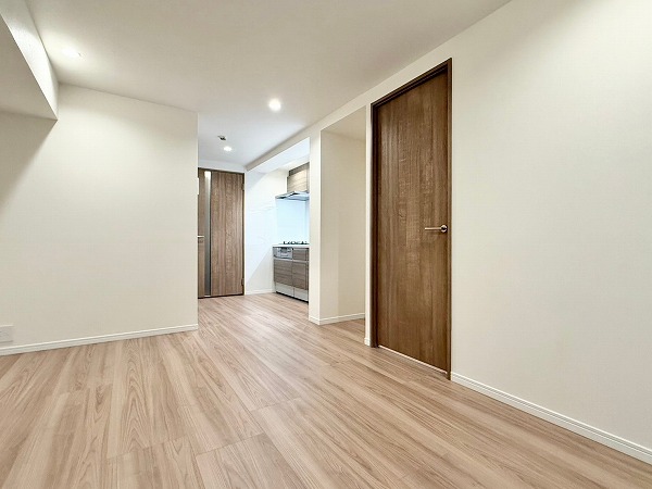 住まいの中心となるLDKは約8.8帖。奥行きがしっかり確保されているため、ゆったりしたソファやダイニングテーブルも無理なくレイアウトできます。全室フローリング仕上げで、清潔感と統一感のある空間です。