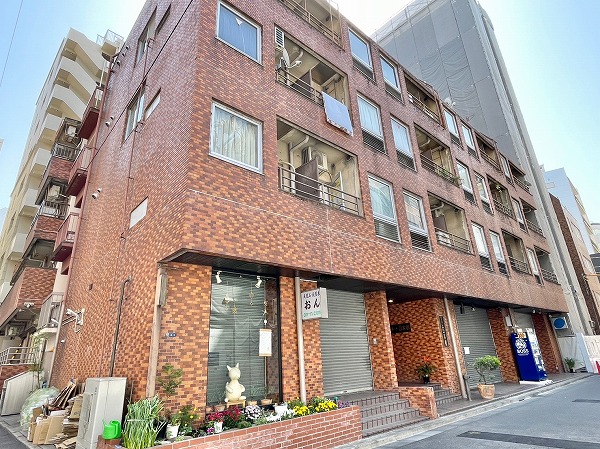 人形町駅からわずか徒歩4分という便利な立地に建つ『パレ・ドール日本橋』。落ち着いたレンガ調の外観が目を引くマンションです。昭和築ながらしっかりとメンテナンスされており、外観はとても綺麗な状態✧全79戸の中規模レジデンスで、1階には飲食店や天然石ショップなどが入っており生活の幅が広がります。