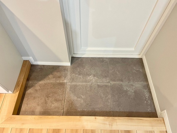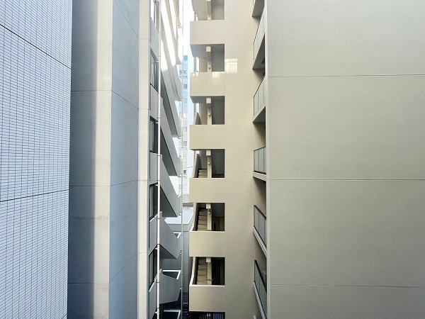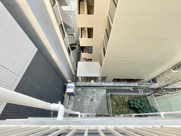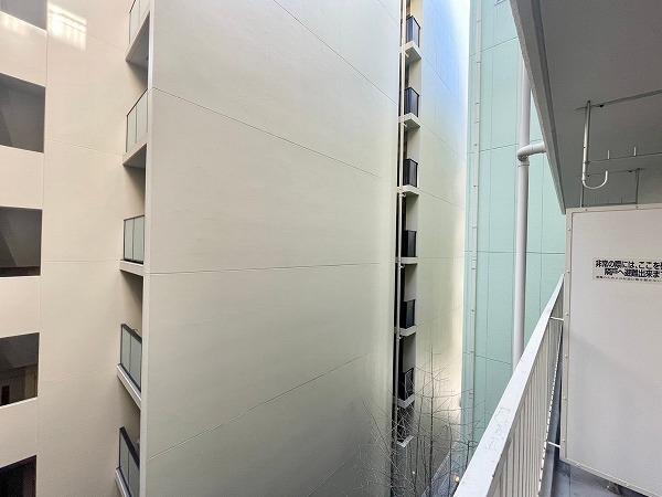 建物へと続くアプローチはゆとりのある造りで、開放感がありました。階段も一段ずつの高さが抑えられているため、小さなお子さまやご年配の方でも安心して通れそうです。ただ、アプローチ前は細い路地になっているので、お子さまが飛び出してしまわないよう少し注意していただくと安心です。
