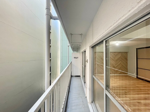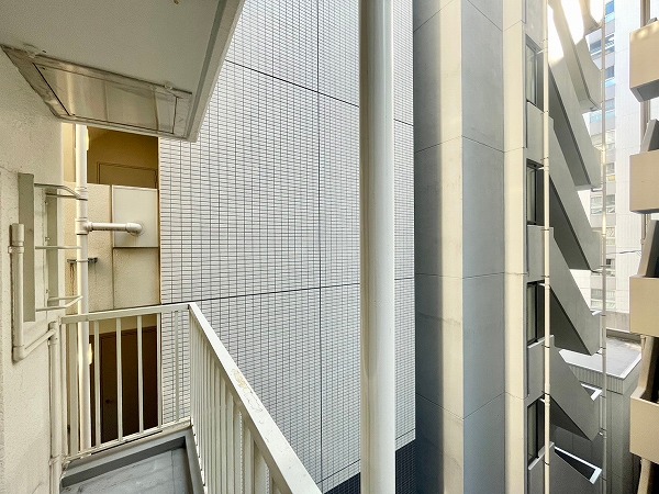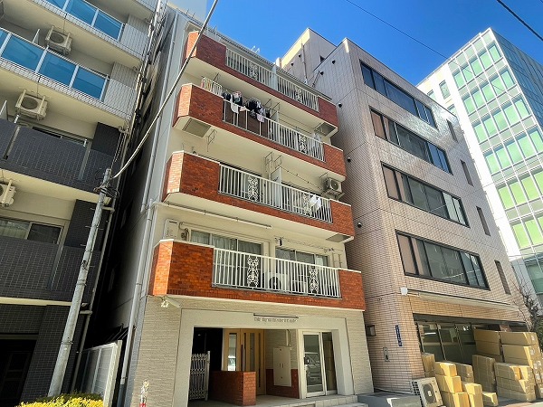 浜町駅から歩いて4分。金座通りから路地へ入って真っすぐ進んだ先に姿を見せるのが『ワコー東日本橋マンション』です。ホワイト×ブラウンの端正な外観にデザイン性のあるバルコニー手すりが加わり、控えめながらも上質な雰囲気。1980年築と歴史のある建物ですが、外観の劣化はあまり見られず、丁寧に維持されている印象を受けました。