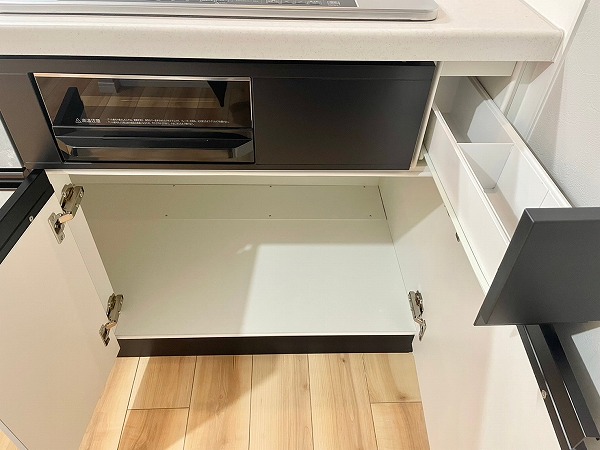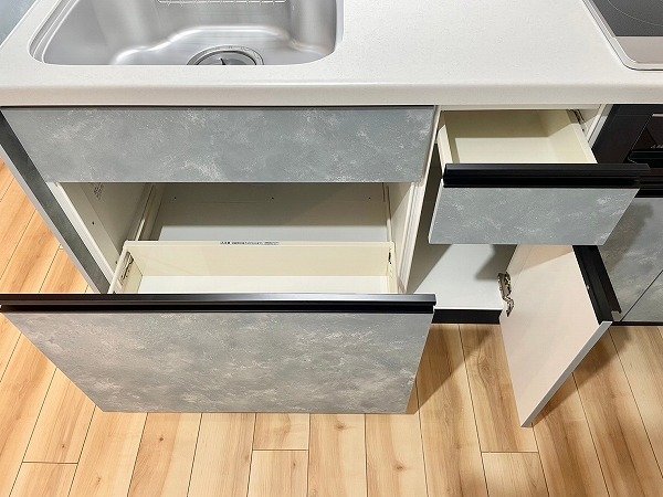 IHコンロは火を使わないことで安全性が高く、キッチンまわりを清潔に保ちやすいのが魅力。フラットな表面はサッと拭くだけでお掃除完了!3口仕様でグリルも搭載されているため、忙しい日の時短調理から本格的なレシピまで幅広く対応できますね。