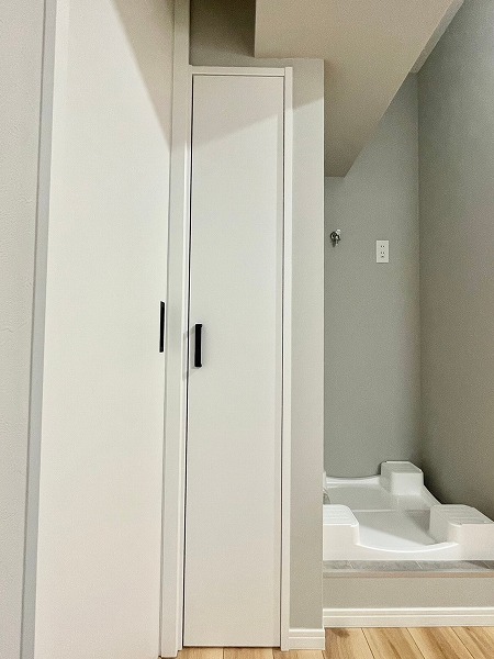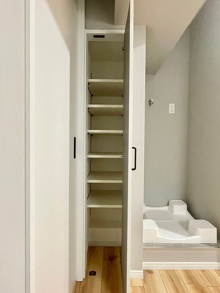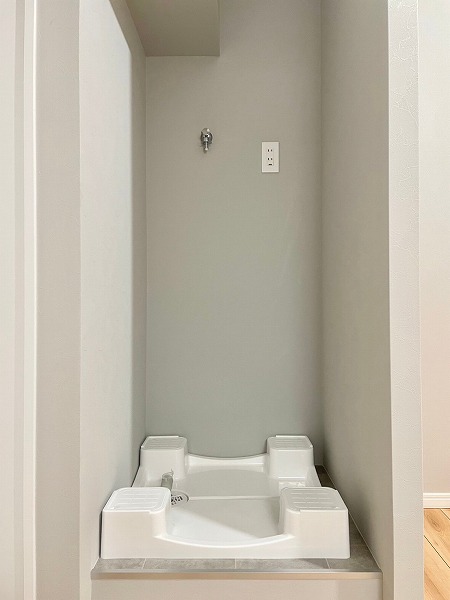 トイレ・洗面台・浴室が一体となったサニタリールームは、省スペースでありながら機能性が高い造り。動線が短く、朝の支度から夜のバスタイムまでスムーズに使えるのが便利です。まとめて掃除できるため、家事の負担が軽くなるのも嬉しいポイント♪