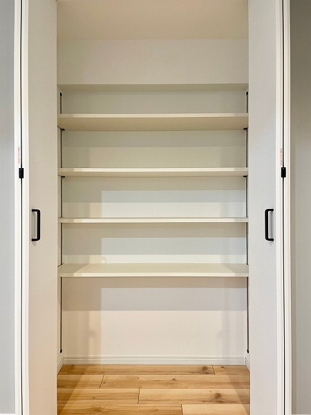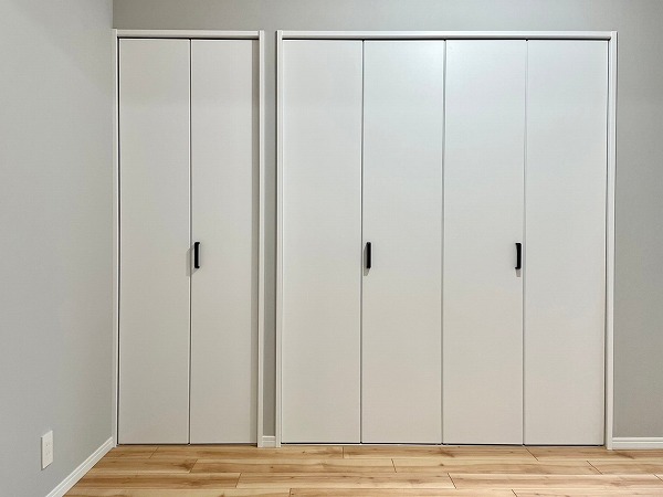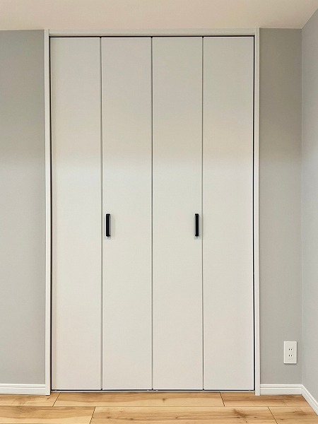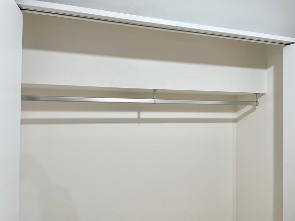 洋室に設けられたクローゼットは、右側にハンガーパイプを備えた衣類収納、左側には物を隠してしまえる棚スペースという嬉しい組み合わせ。お気に入りの服はシワなく掛けられ、日焼けさせたくない物や生活用品もすっきり収まります。