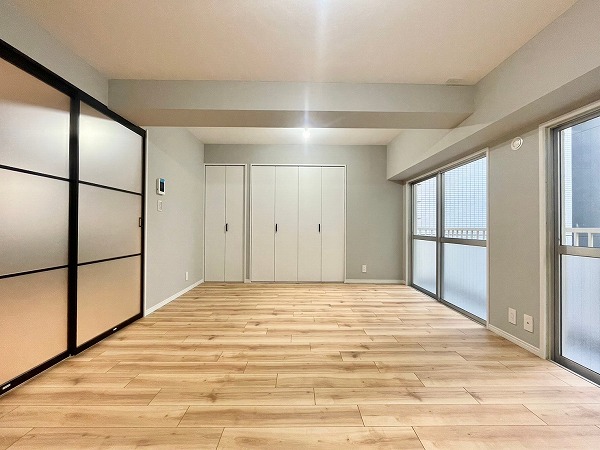 浜町駅から徒歩4分の所に佇む『ワコー東日本橋マンション』。周辺には都心とは思えないほど広々とした「浜町公園」が広がりスポーツセンターや温水プール、運動場など多彩な施設あり、休日の過ごし方には困らなそうです◎今回ご紹介するお部屋は専有面積45.74㎡の1LDK。玄関からリビングが見通せる間取りのため、生活スペースを隠したい方はパーテーションやグリーンを配置することで視線をコントロールできそうです。個人的に印象的だったのは、洋室のヘリンボーン柄のアクセントクロス!空間に奥行きを生みつつ、やさしく可愛げのある雰囲気をつくり上げていました♡また、ライトグレーの壁紙とホワイトサッシの組み合わせもナチュラルなデザインで様々なテイストの家具とも相性が良さそう。写真以上に良さを実感できるお部屋なので、ぜひ実際にご覧になってみてくださいね♪ ライター:hana【25K19】