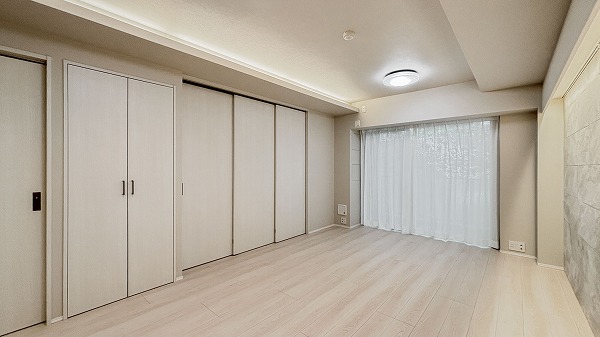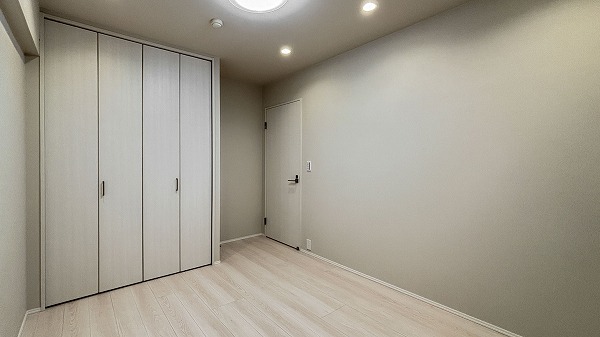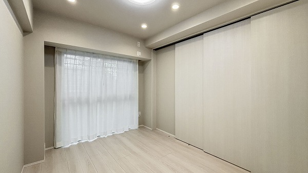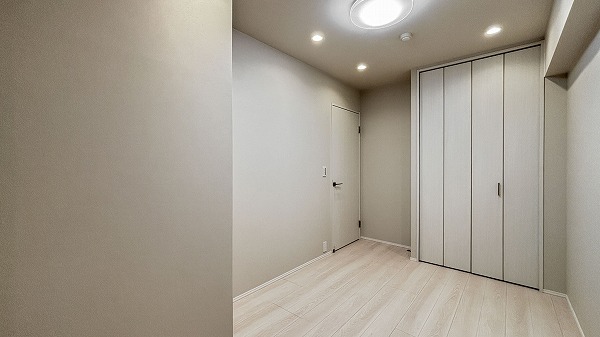 主寝室にふさわしい約6.2帖の洋室。ベッドと収納家具を置いても余裕のある広さで、日常を整える落ち着いたプライベート空間です。リビングからスムーズにアクセスでき、朝の身支度もスムーズ。柔らかな光が差し込む設計となっており、心を静かに整えたい時間にも最適です。