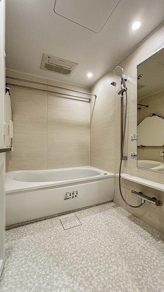 バスルームは清潔感溢れるデザインでまとめられ、ゆったりとくつろげる癒しの空間。快適なご入浴に欠かせない追焚き機能&浴室乾燥機を搭載しています。機能面もしっかり充実。