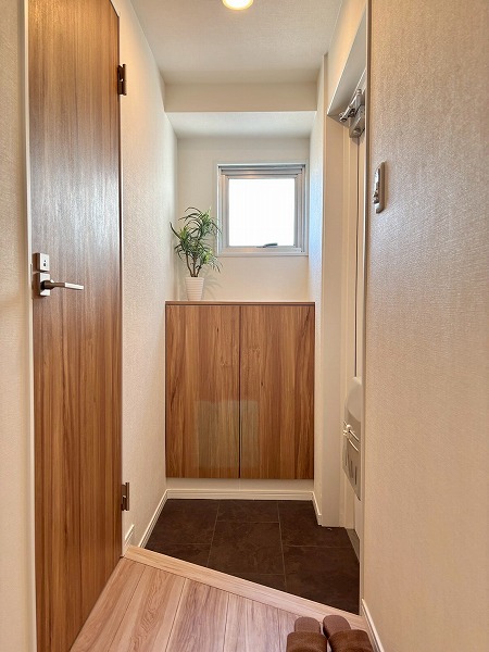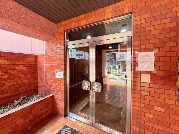 奥行きのあるアプローチを進みましょう♪エントランスドアには夜間オートロックが採用されています。これなら往来の多い通り沿いでも安心して暮らせますね。