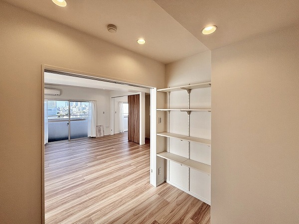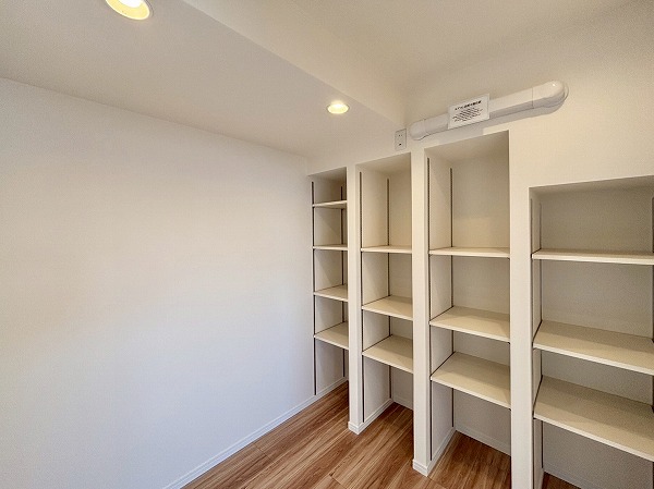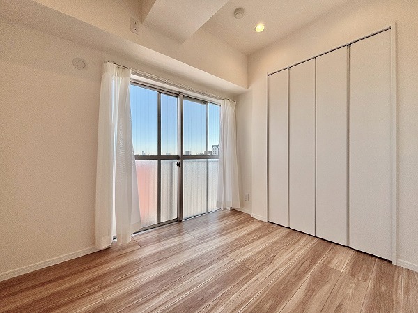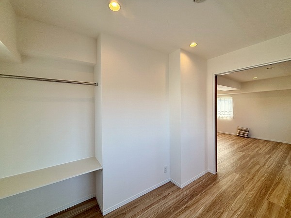 こちらの洋室には窓がありませんが、その分2面に収納がしっかり備わっています!書斎や趣味のお部屋などとして使うのはいかがでしょうか。メインルームとは引き戸で区切られており、戸を閉めればリモート会議などにも対応いただけます。