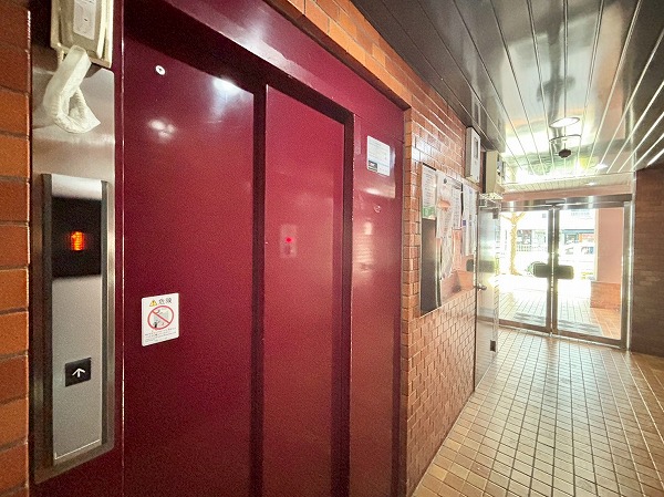 エントランスには管理人室があります。万が一困ったことがあれば、すぐ管理人さんにご相談いただけますよ。エレベーターに乗り込んで上階へ…!