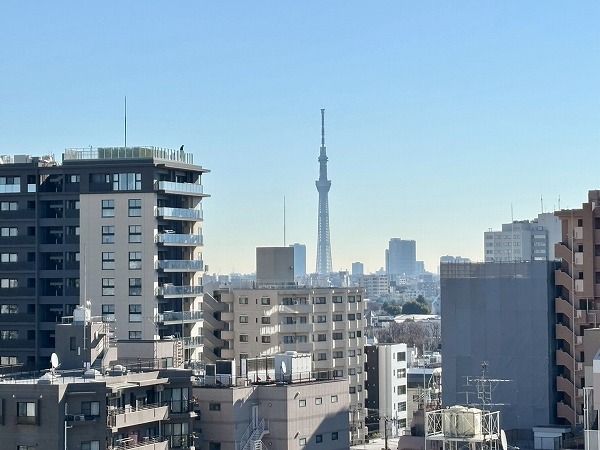 今回のお部屋の魅力の1つは…ずばり眺望です!南西側のメインバルコニーからは、六義園の緑と富士山を同時に眺めることができます。また、北東側のバルコニーからは東京スカイツリーも望めるんです。日本らしさを満喫できる眺望と言えますね。
