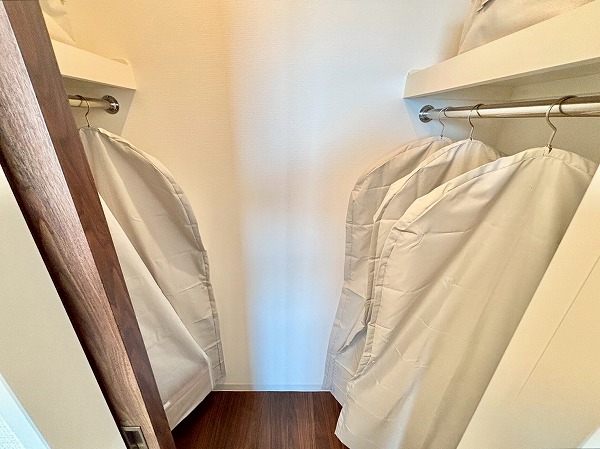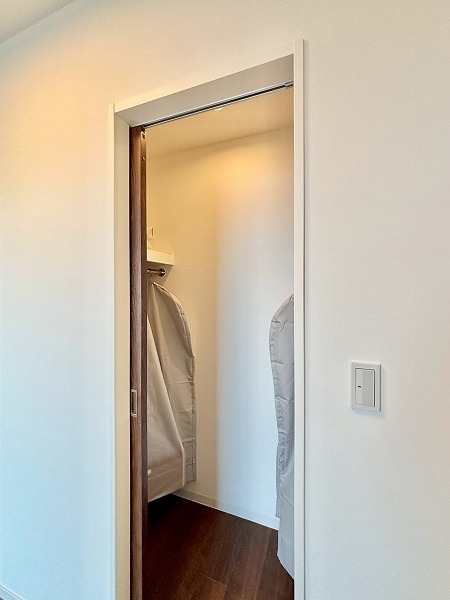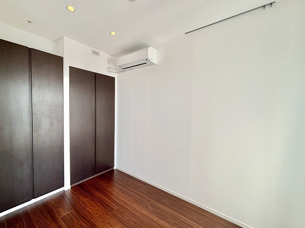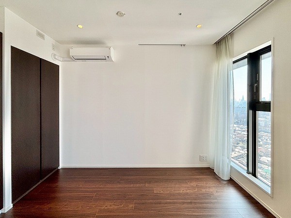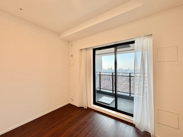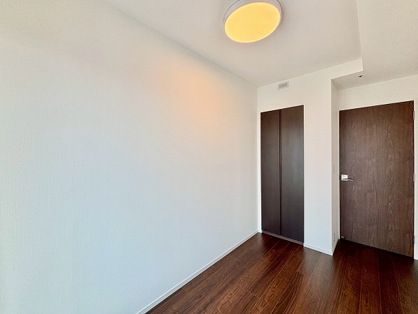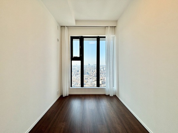 洋室はおよそ6.0帖・およそ5.2帖・およそ4.7帖の3部屋。全ての洋室が南西側に窓があり、高層階23階からの景色をご堪能いただけます。収納はお部屋によって大きさがまちまち。1番広いおよそ6.0帖の洋室にはウォークインクローゼットが備わっていました。必要に応じて別途収納を用意しても良さそうです。