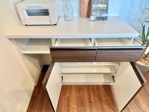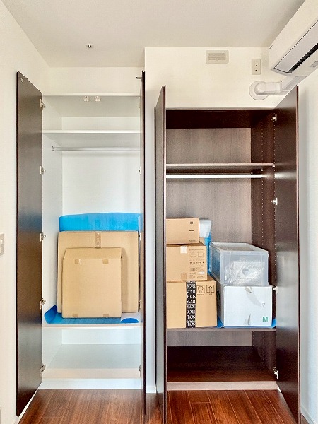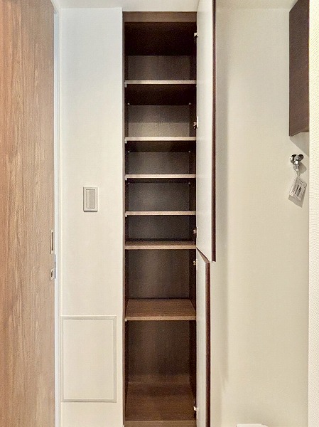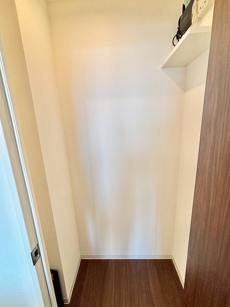 さらに、キッチンのお隣におよそ0.6帖の納戸を発見しました!収納ボックスやラックを使用すれば、食品を保管するパントリーとして使用することもできそう。他にも日用品やペット用品のストック、お掃除道具の保管場所にもピッタリですね。荷物を沢山しまって、お部屋の生活感を隠しましょう。