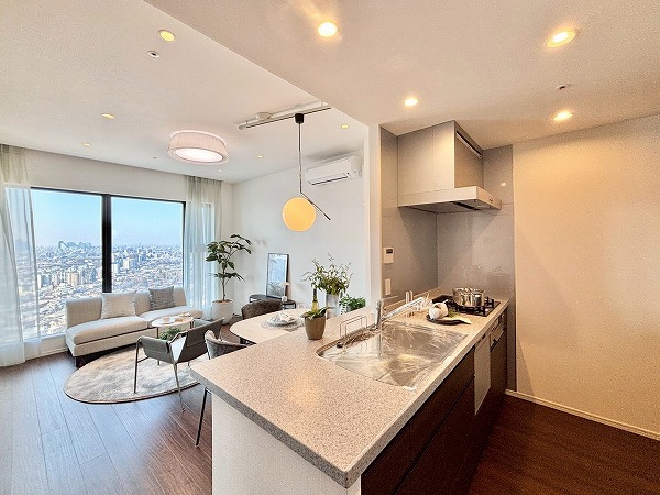 今回ご紹介するのは、23階部分に位置する3LDK。パノラマウィンドウが映える、明るく開放的な室内です。夜には美しい夜景も楽しめそうですね。シンプルながら高級感のあるデザインで、家具のコーディネート次第でさらに魅力が引き立ちます。さらに、納戸やカップボードなど収納スペースも豊富。地下1階には専用トランクルームも備えられており、レジャー用品や季節物の保管にも便利です。 ライター:mii【26B15】