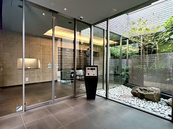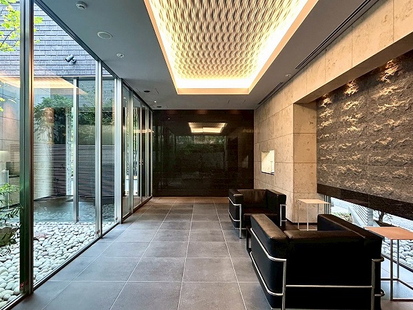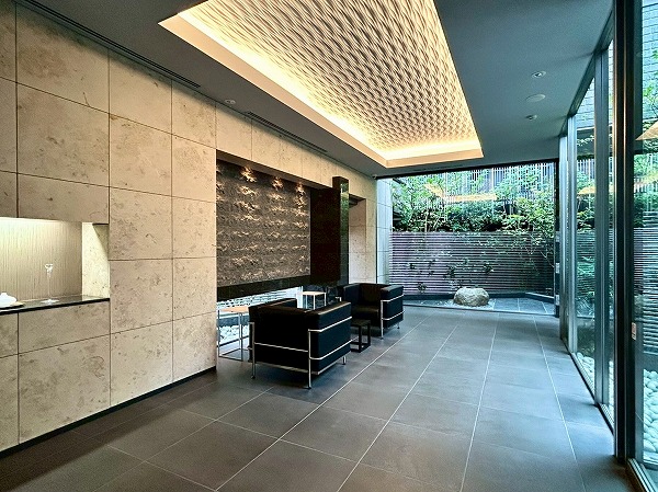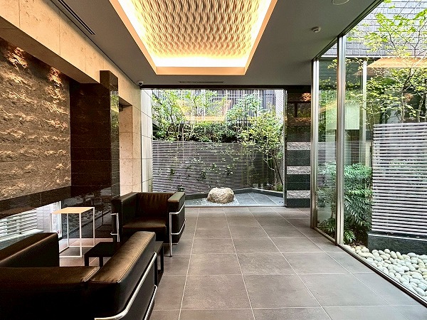 高級感のある照明が上質な空間を演出しているエントランスラウンジは、中庭に囲まれており開放感たっぷり。ご友人との談笑など、中庭を眺めながら有意義な時間をお過ごしください。