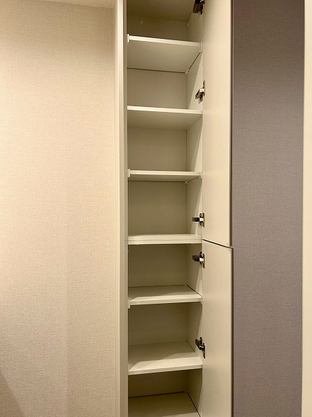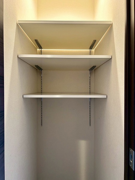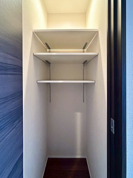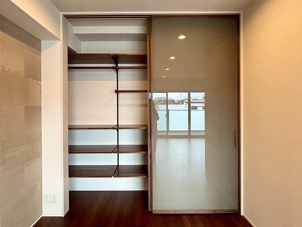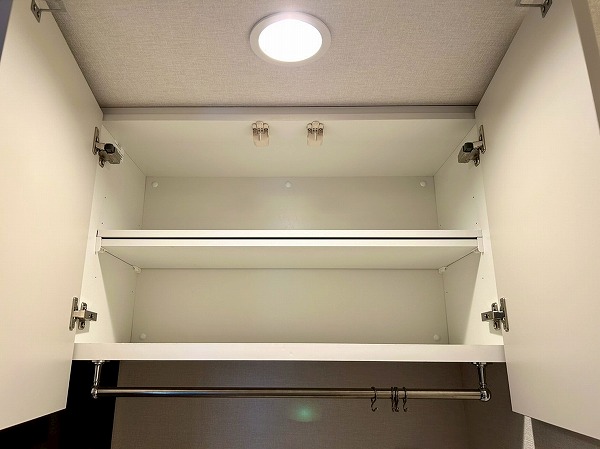 LDKには大きなクローゼットがあり、日用品等を収納すれば空間をスッキリと保てますよ♪棚は可動棚仕様となっており、無駄なく収納ができそうですね✧