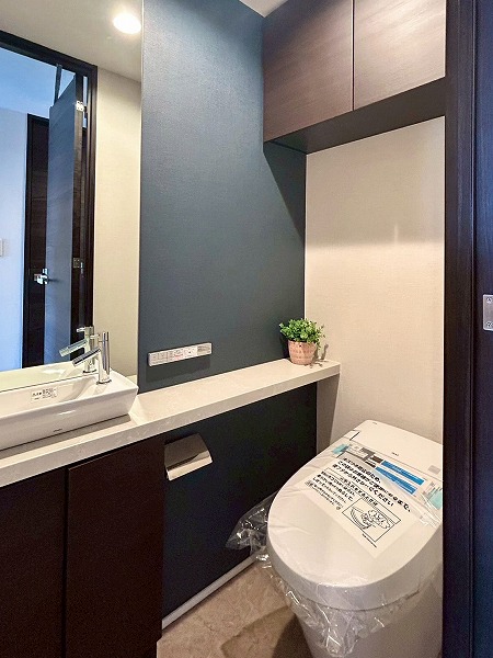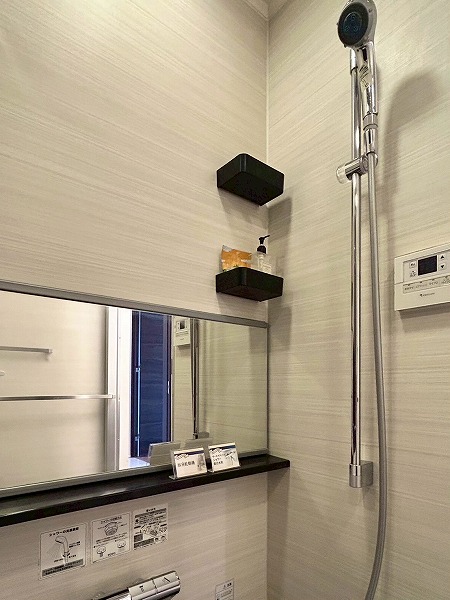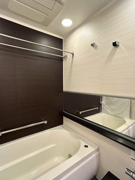 バスルームは浴室換気乾燥暖房機と追い焚き機能が付いており、いつでも快適な温度で心地よく入浴できます❀焦げ茶色のワンポイントクロスは落ち着いた印象がありますね♪