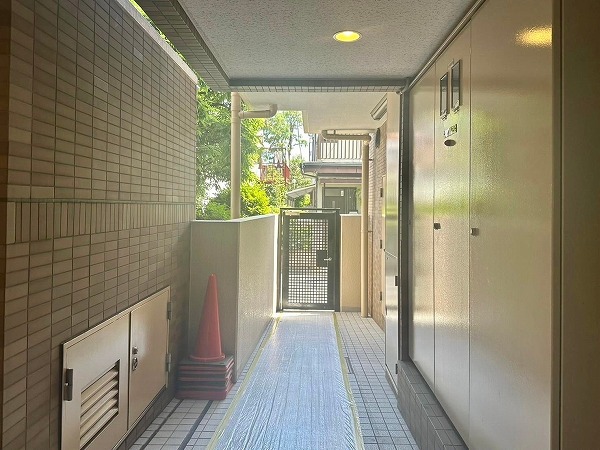 オートロックの先はゆったりとしたエントランスホール。エレベーターや階段を利用してお目当てのお部屋に向かいます。