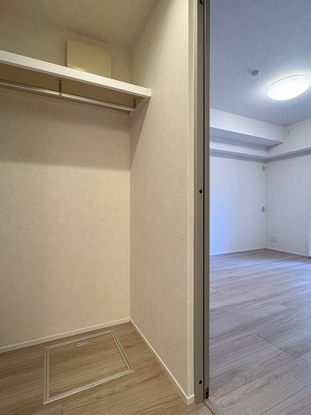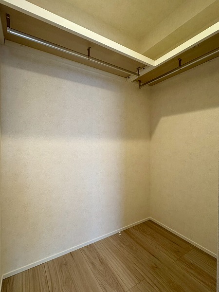 また、メインルームには隣接する洋室へと通り抜けられるウォークスルークローゼットがありました。回遊性のある動線で、掃除機がけもスムーズに行えます。収納力も高く、衣類はもちろんスーツケースや季節家電までまとめて収納できるため、室内をすっきりと保てそう。バルコニーは南・東向きのL字型で、広さは16.56㎡。洗濯物をたっぷり干せるゆとりがあり、陽当たりと風通しの良さも実際に感じられました。日々の家事が気持ちよくこなせそうな印象です☀広さ・動線・設備の充実度。そのどれもが、家族での暮らしを丁寧に支えてくれる一室。ぜひ、ご興味がある方は実際に足を運んでみてください♪ ライター:hana【2605】