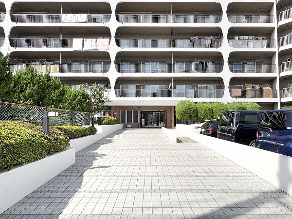 可愛らしいタイルが印象的なアプローチは、フラットな造りでキャリーバッグやベビーカーをご利用の際もスムーズにご移動いただけます。雨具や日傘の準備をゆっくりと行える大きな屋根が付いているのが嬉しいですね。防犯カメラが付いているので、セキュリティ面も安心◎