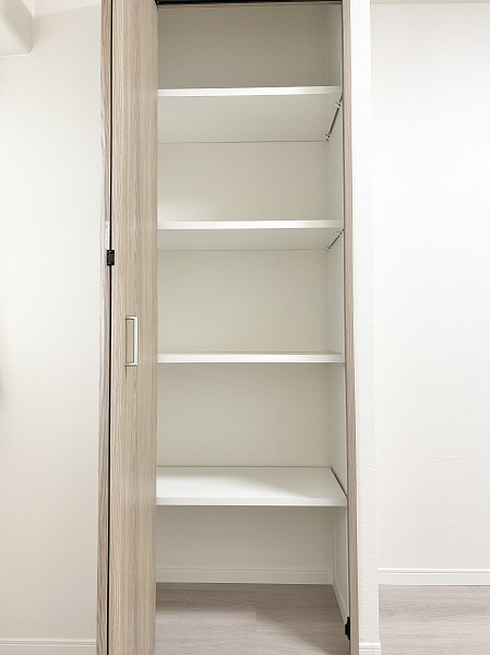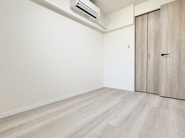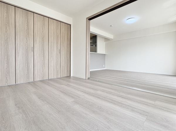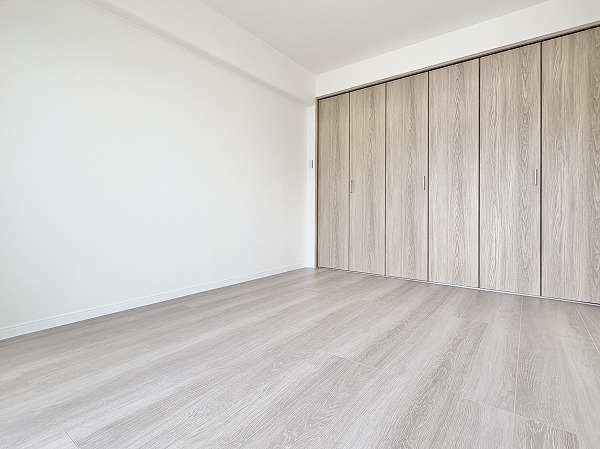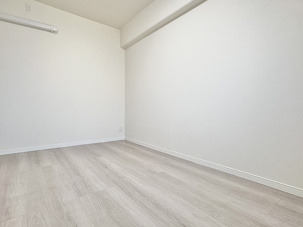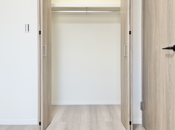 約6帖の洋室には大容量のクローゼットが設けられています。季節もののコートやかさばりやすいダウンジャケットなども、シワを付けずに綺麗に保管ができますよ。上部の棚にはシーズンオフのお洋服や布団などをしまっておくことができそうです。