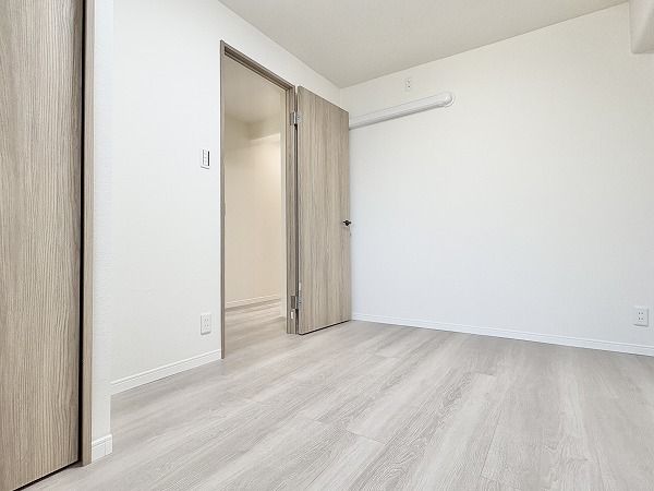 こちらは温かみのあるホワイトとブラウンの色味が印象的な約5.2帖の洋室です。ナチュラルテイストな内装デザインが採用されているので、どんな色の家具やカーテンも合わせやすくお気に入りのインテリアをお楽しみいただけますよ♡