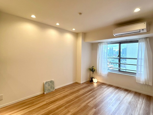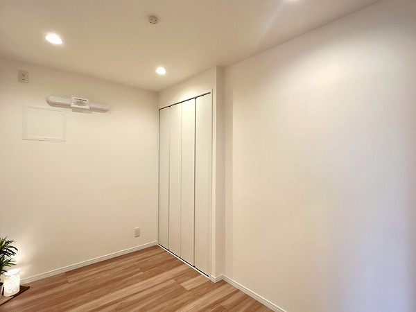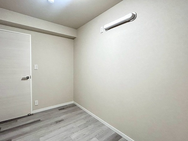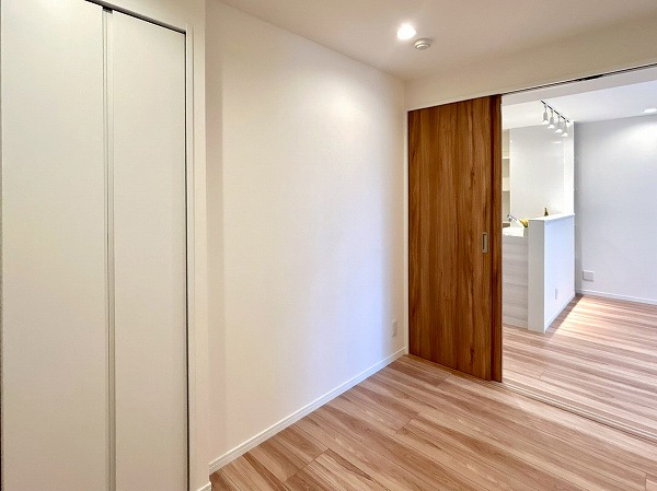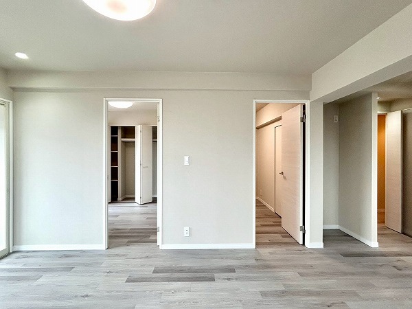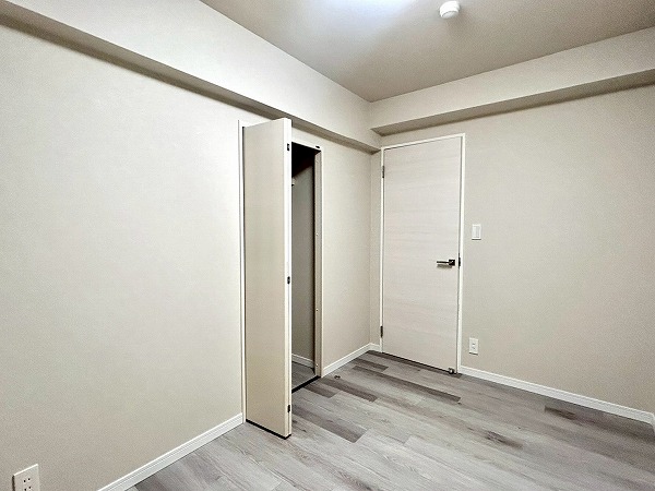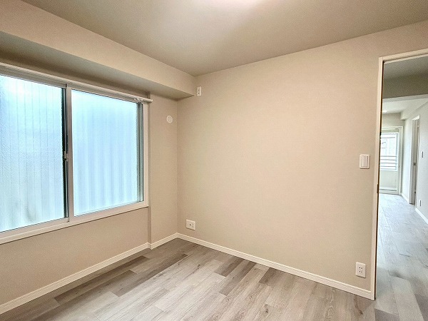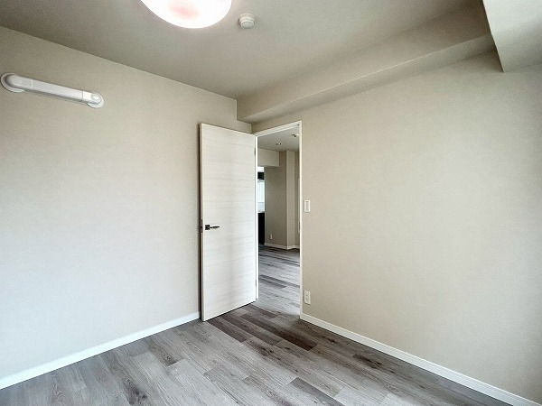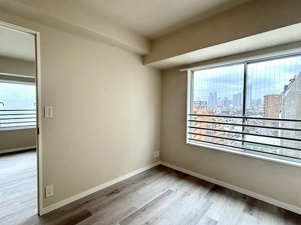 こちらの洋室は、ベッドルームとしてのご利用におすすめです。ゆとりある広さを確保しており、ダブルベッドも余裕を持って配置可能です。ドアを開放すればLDKと一体となり、より開放感のある空間としてお使いいただけますよ。