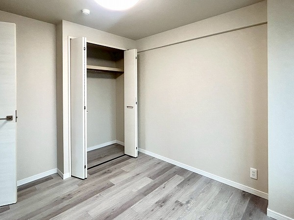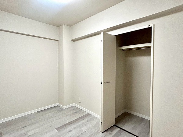 約5.3帖の洋室は、ベッドルームやワークスペースとして活用できる使い勝手の良い一室です。クローゼットが備えられており、衣類を整理してスッキリとした印象を保つことができますよ。
