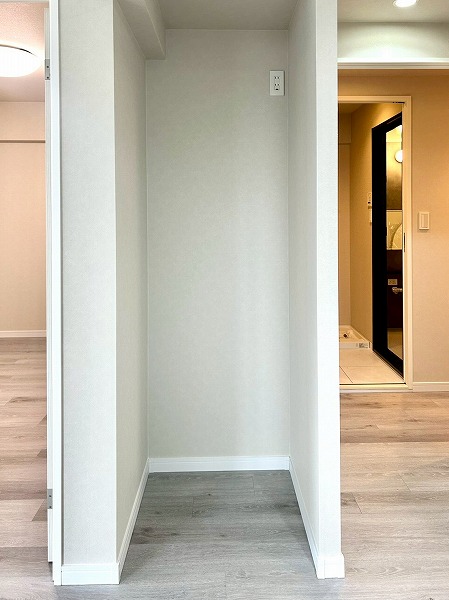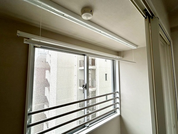 バルコニーの代わりにサンルームを備えており、窓が2つ設けられているため風通し・陽当たりともに良好です。ドア付きのため、外の匂いやキッチン周りの匂いの影響を受けずに洗濯物を干すことができ、快適にご利用いただけますよ。