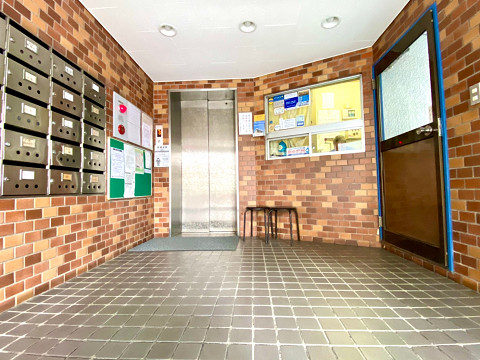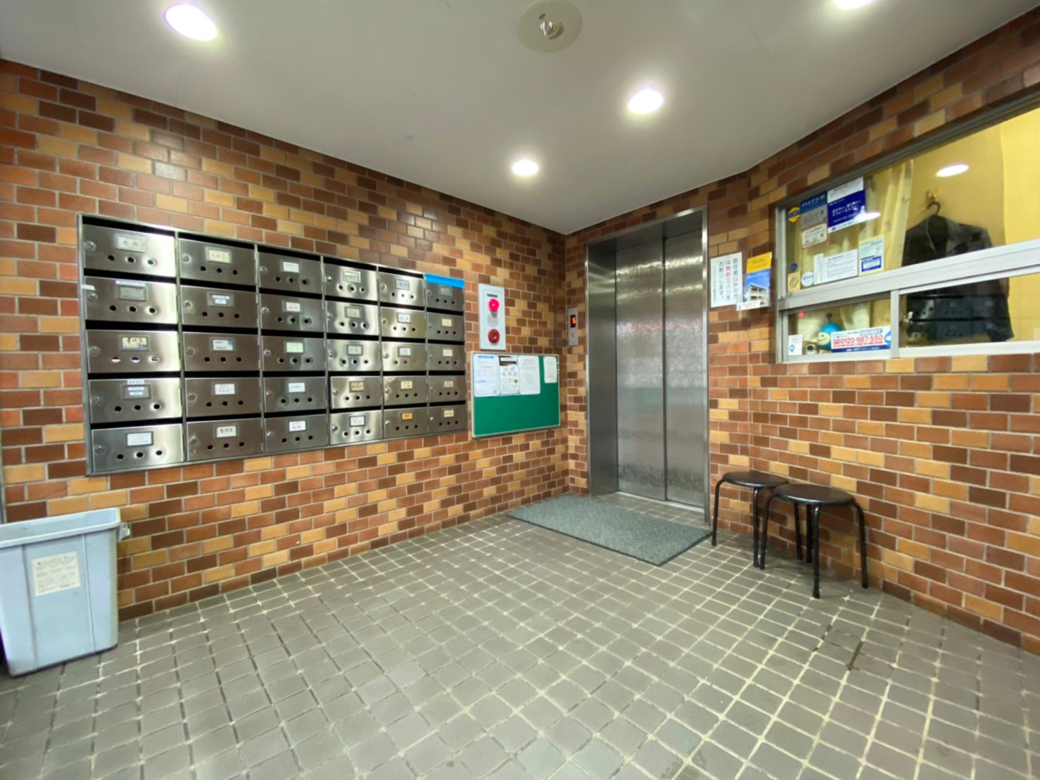 エントランスには管理人室が完備されているので防犯面で安心です◎エントランスを抜けた先にはピカピカなエレベーターが1基設けられています。