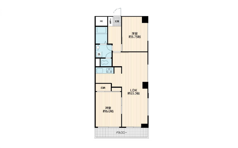 京王線・芦花公園駅から徒歩3分。駅を出ると落ち着いた住宅街が広がり、コンビニやスーパー、郵便局などが点在しています。道幅が広くフラットな地形なので、自転車移動も快適。朝の通勤や買い物帰りもストレスの少ない暮らしが叶いそうです。ご紹介するのは、1978年築・地上9階建てのマンション。淡いグレーの外観が街並みに馴染み、落ち着いた佇まいです。エントランス周りは清潔に保たれ、管理が行き届いている印象。総戸数29戸という程よい規模感で、住民同士の距離感も心地よく感じられます。お部屋は南向きの2LDK。バルコニーに面したリビング・ダイニングは約13帖あり、明るい陽射しが差し込む空間です。リビングから2つの洋室へスムーズにアクセスでき、家族の会話が自然に生まれる間取り。キッチンは壁付け型で、リビングを広く使えるのも嬉しいポイントです。各居室にはクローゼットが備わり、日用品や衣類をすっきり収納できます。水まわりは廊下側にまとまっており、生活動線もスムーズ。洗面室や浴室はゆとりあるサイズ感で、リフォームによってさらに快適な空間に仕上げることも可能です。リビングの床材やキッチン設備を一新すれば新築のような印象に生まれ変わるでしょう。弊社でもリフォーム工事を承っているので、ぜひ合わせてご相談ください♪