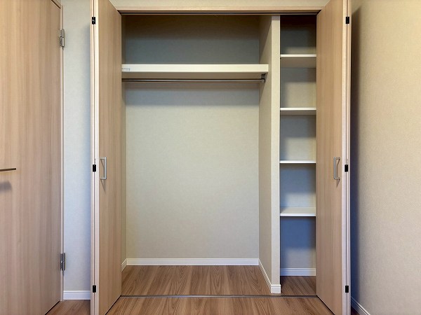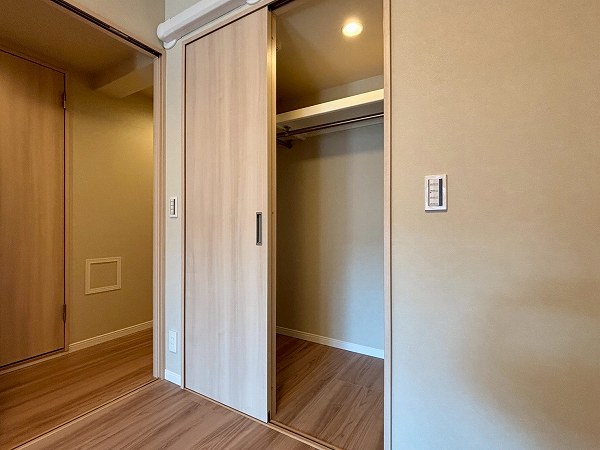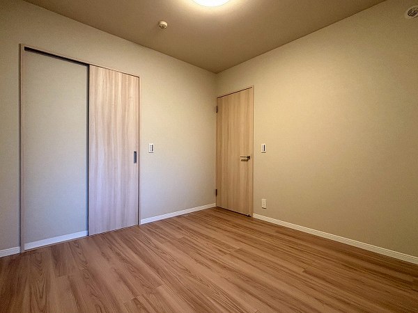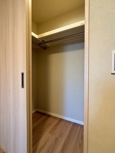 約4.7帖の洋室はリビングダイニングのすぐそばに配置。家族の気配を感じながらも自分時間を大切にできるポジションです。ウォークインクローゼット付きで収納力も確保。空間を有効に使いながらすっきりと整った暮らしが叶いますよ♩