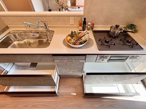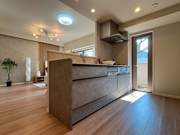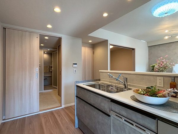 ポイントはキッチンとサニタリールームをぐるりとつなぐ回遊動線。洗濯から調理までの動きがスムーズで、忙しい日常を静かに支えてくれますよ。