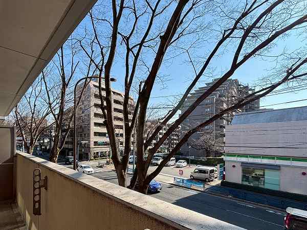 交差点の角地に佇む『パークアベニュー芦花公園壱番館』。7階建て・総戸数146戸の堂々とした佇まいです。1999年築、新耐震基準適合のマンションなので揺れを感じた時も安心♡